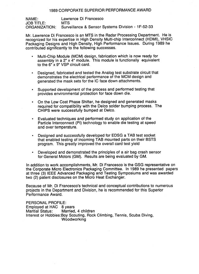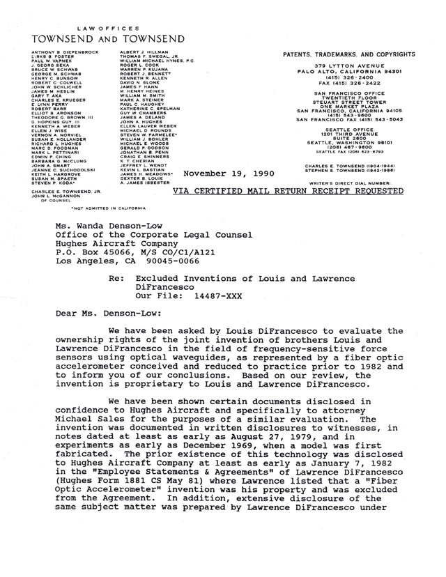 Accelerometer/Transducer release letter from Hughes Aircraft