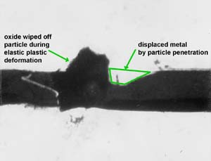 Conductive coated diamond particles connecting two conducting surfaces together.