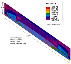 | Stress in heatsink | Single fin & fluid channel heatsink FEA |