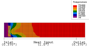 - Heat influx of (1 W along bottom of fin and channel) / (area of 1.5" x 0.004" = 0.006"2) = 166 W/in2 for heatsink